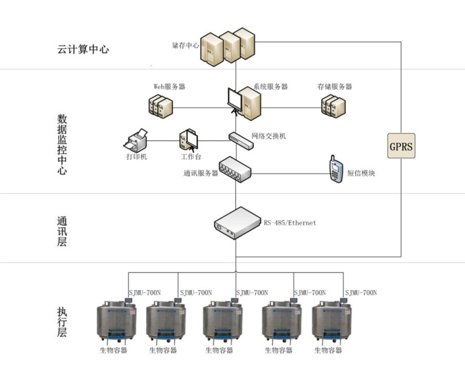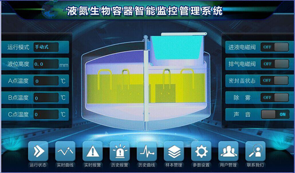 1、液氮罐監(jiān)控:實(shí)時(shí)采集低位、高位溫度,檢測(cè)液位高度;根據(jù)液位值和溫度值自動(dòng)開(kāi)關(guān)進(jìn)液電磁閥;發(fā)送報(bào)警信息。